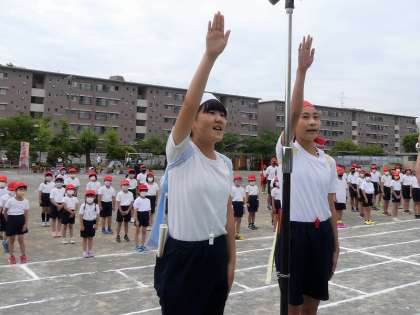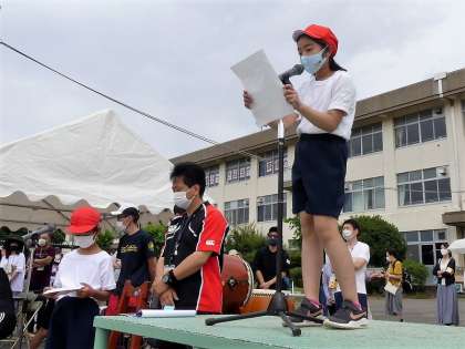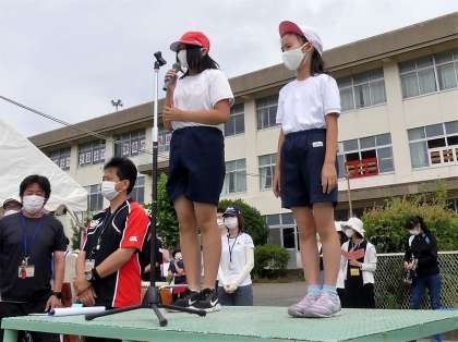 選手宣誓は応援団長、「得点の説明」は得点係、「競技上の注意」は審判係の児童です。