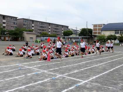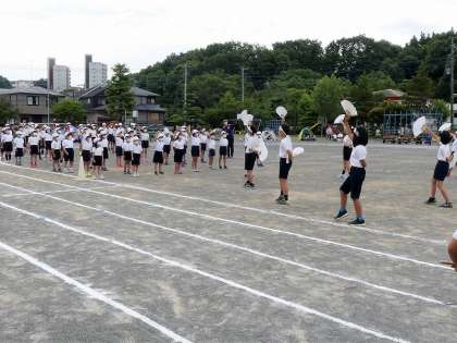 「応援団入場!」「紅組行くぞ!」「オー!」「白組行くぞ!」「オー!」力強い声が響きました。
