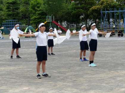 「燃えつきるまで 本気の 赤!」「氷のやいばで つきすすめ 白!」スローガンを言いながら、全員で応援しました。