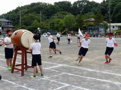 たいこ担当、4年生の応援団メンバーもがんばっていました。