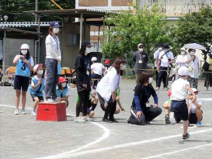 先生方も運動会当日の係分担があります。審判係は、個人競技の順位の確認です。