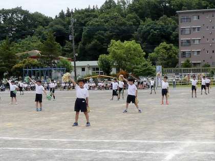 向きをかえたり、ウェーブのような動きをしたり、リズミカルに踊りました。ポンポンがきれいでした。