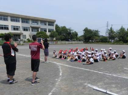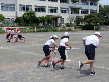 3・4年生による「台風の目」の結果発表です。赤組の勝ちでした。