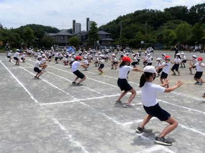 整理体操は、鹿島小オリジナルです。ゆっくり体を伸ばします。