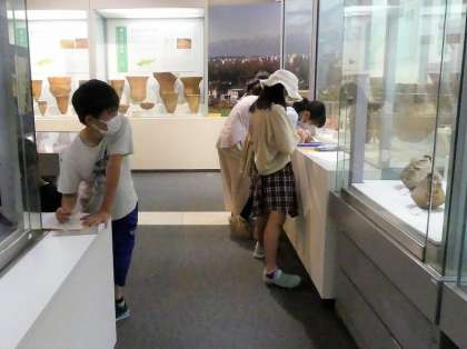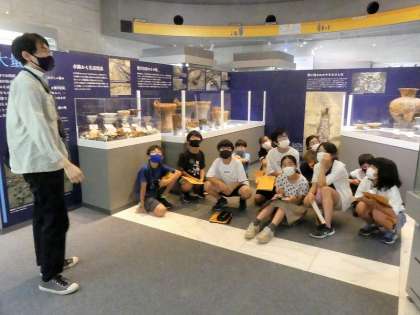 3グループに分かれて、見学や体験をしました。展示ホールには、旧石器時代から江戸時代までの通史が展示されています。