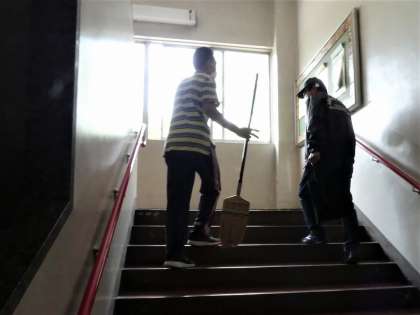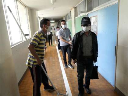 6月の避難訓練は、不審者が学校に侵入した想定で行いました。南大沢警察署の方が不審者役になって、昼休みの終わりに校内へ侵入してきました。子供たちは各教室に入ってドアの鍵を閉め、廊下から見えないところへ静かに避難しました。