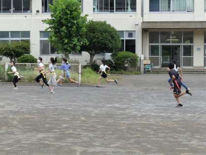 今朝の集会は、クラス遊びでした。校庭中を走り回っていたのは、6年生。「しっぽ取り」です。6年生が全力で走ってくると、迫力があります。