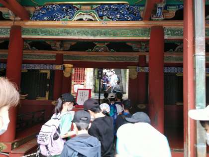 小さいです。分かりますか。みんなは、奥社に行っています。