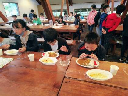 みんな、よくお代わりをしていました。元気です。なぜか、カレーライスで、暖をとる子どももいました。