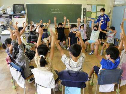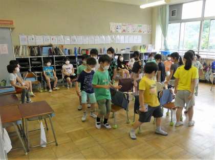 3年生「震源地ゲーム」、2年生「いすとりゲーム」です。