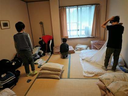 左の写真は、夜です。なかなかきれいなお部屋なので「写真撮ろうかな」というと、後ろ向きになっていたところです。