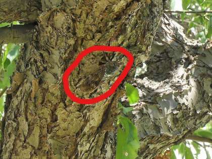 バッタとセミがいました。保護色というのでしょうか。草や木と同じ色なので、ちょっと見ただけでは、見つけにくいですね。