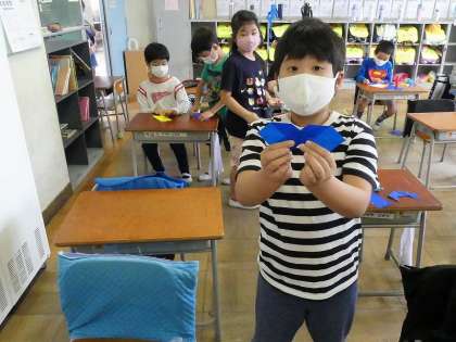 折り紙で作品を作っていました。複雑な折り方にも挑戦しました。