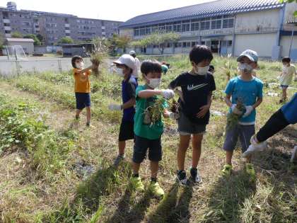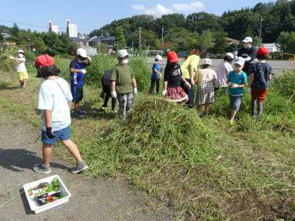 2年生も草取りを頑張りました。冬に育てる野菜のために、畑の雑草もたくさん取りました。