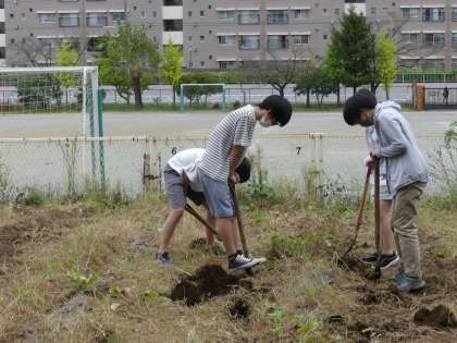 明日は、芋ほりです。6年生が、芋ほりの準備をすすめてくれました。たくさん収穫できるとよいのですが…。