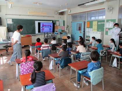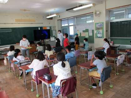 歯科校医の先生に来ていただき、1年生と4年生にブラッシング指導を行っていただきました。今年度も感染症対策で染め出しは行いません。DVDや夏休みのカードを見ながら、学習しました。一生使う大切な歯ですので、毎日きちんと磨いていきましょう。