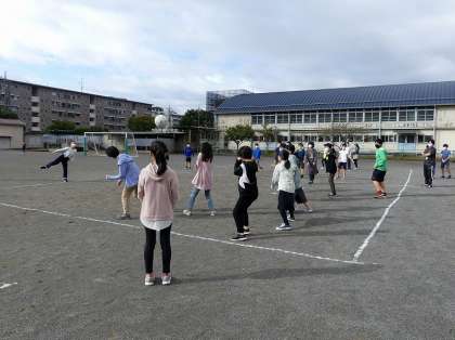 6年生のドッジボールは、展開がはやいです。逃げる(よける)だけでも、運動量がありますね。