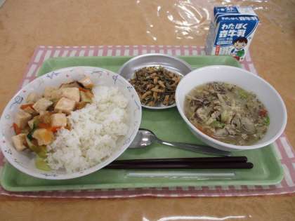 今朝は一段と冷え込みが強くなりましたね。今日はピリ辛の四川豆腐に温かいスープだったので、とてもからだが温まる献立でした。