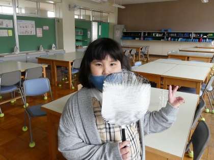 根気の必要な作業でしたが、頑張りました。たくさん巻けて、綿菓子のようになったうちわです。