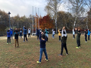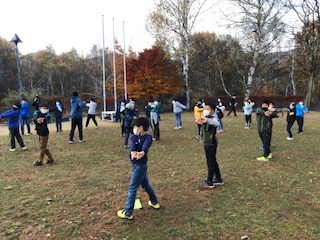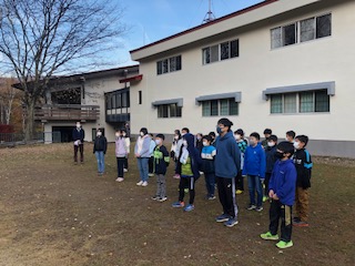 外のは気温1℃。朝の会で今日の予定の確認をして体操をしました。