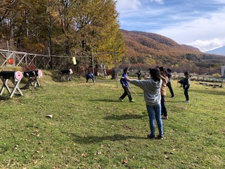 黒耀石キーホルダーを仕上げた後は、館内をを見学したり、屋外で弓矢の体験をしたりしました。