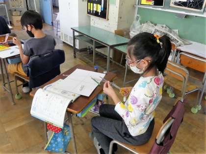 かげのでき方や太陽の光について調べる学習を始めました。かげと太陽の動きを調べる記録用紙を作り、方位磁針も使って、記録していきます。