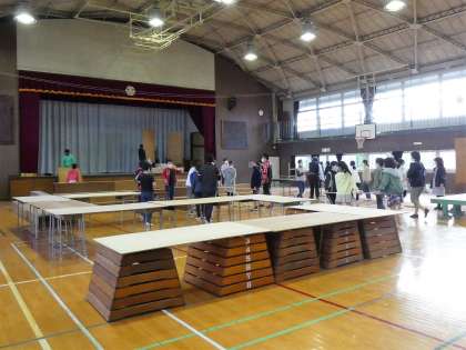 昨日の6時間目に6年生と職員で作品展の準備をしました。体育館を片付けて掃除をし、展示に使うパネルを運び込みました。来週から、どんどん作品が飾られていきます。作品展まであと1週間です。体育館がどんな美術館に変身していくか楽しみです。