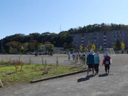 今日は、火災時、放送機器が使えないという想定で行いました。職員室にいる教職員で分担し、大きな声で「校庭に避難してください」と伝えました。放送が使えないときは、人の声が頼りです。子供たちは、静かに指示を聞いて、避難できました。