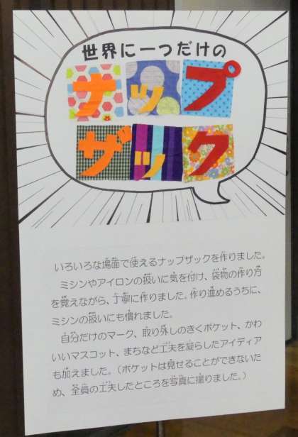 作品展では、子供たちの作品はもちろんのこと、各作品の紹介文もご注目を。写真は、5年生の家庭の作品紹介です。どこかで、見たような…。