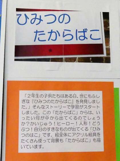 「ひみつのたからばこ」は、立体的につくった宝箱から、自分の好きなものが出てくる様子を描きました。