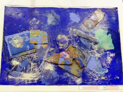 「凸を感じて⇔凹を考えて」いろいろな素材や材料を使って、画面を思いっきりデコボコにした作品です。