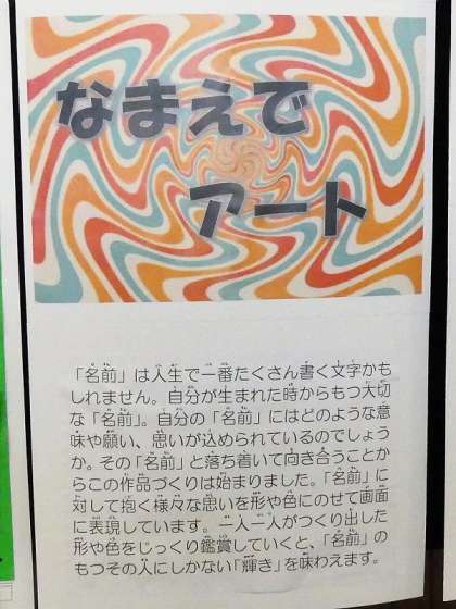 「なまえでアート」自分の名前をアートにしました。とても素晴らしい作品なのですが、「名前」なのでホームページには載せられません。残念です。
