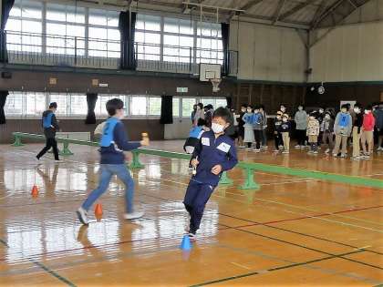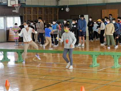 どの学年も、平均台をまたぐところが難しかったようですが、みんなで楽しめる集会でした。