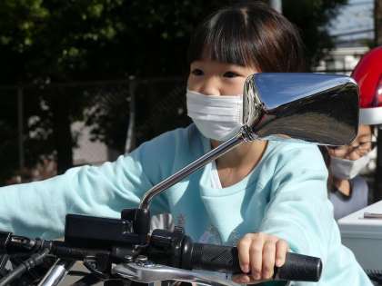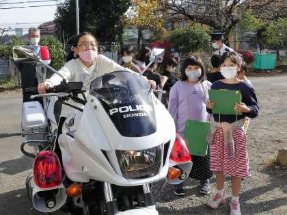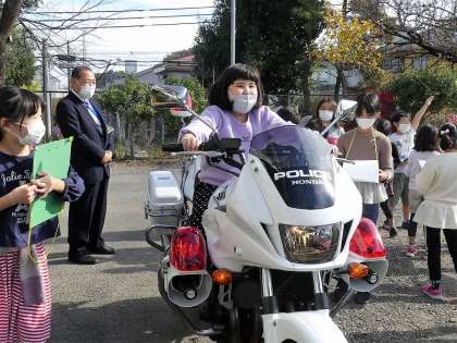 白バイに乗らせていただきました。みんなとっても喜んでいました。
