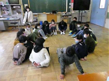 ハンカチ落としをしていたのは、4年生です。ハンカチを落とされると、うれしそうに追いかけていました。