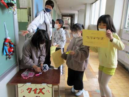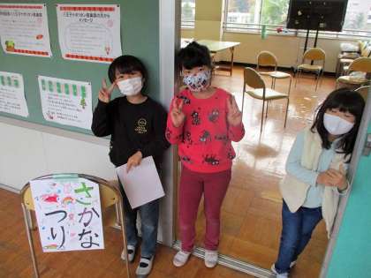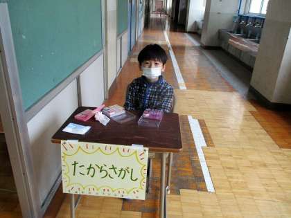 1年1組、2年1組の教室と算数教室、ランチルームに分かれて、お店を準備しました。