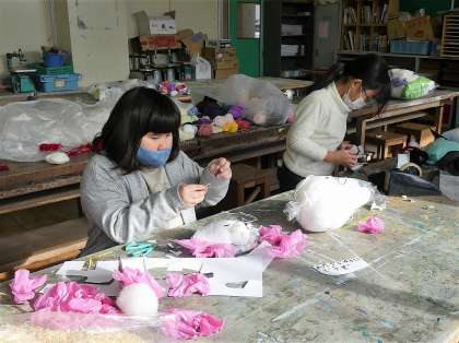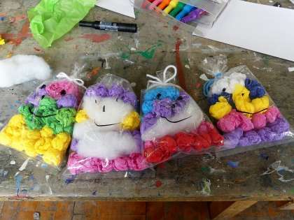 ビニール袋にお花紙や毛糸などを入れてカラフルにします。
