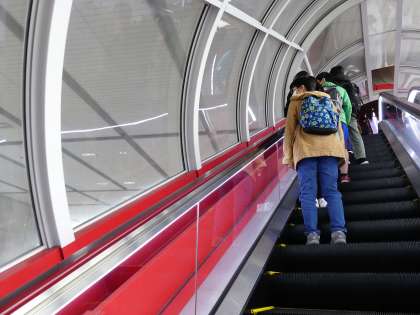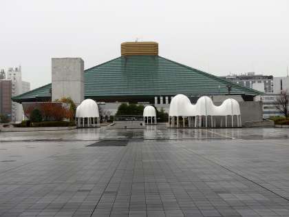 お弁当を食べたら、博物館へ長ーいエスカレーターで移動しました。ここも、なかなか風のとおりが良く寒かったです。江戸博の隣は、国技館です。