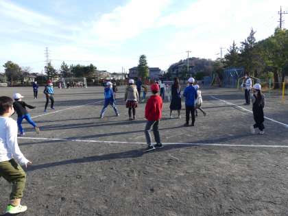 「だるまさんがころんだ」「だるまさんの一日」「得点ドッジ」「かわりおに」「ドロケイ」「ケイドロ」「ドッジボール」「王様ドッジ」を楽しみました。細かい違いは、お子さんに聞いてください。
