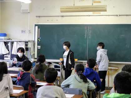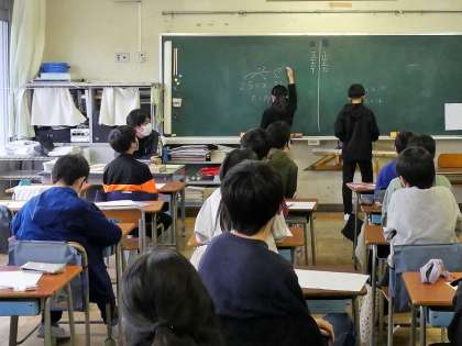 2学期の復習を、クイズ形式で行っていました。くじを引いて(計算、漢字、理科など)、問題を解きます。みんなの前で解くのは、ドキドキしますね。難しかったのは、「新月から15日目の月は何というでしょう」という理科の問題でした。皆さんは、分かりますか。