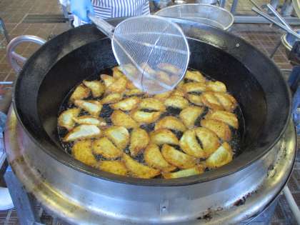 写真3枚目:ぎょうざを揚げているところ