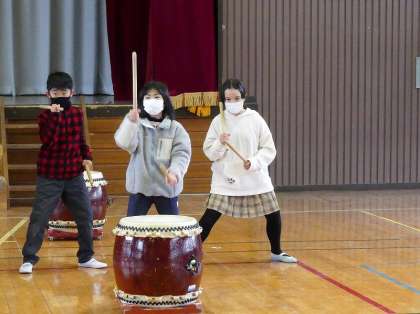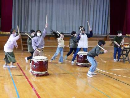 明日の集会発表に向けて、練習をしました。締め太鼓も加わって、力強い「ぶち合わせ太鼓」です。講師の先生からは、「じょうずにできているから、間違えを恐れずに演奏しましょう」とアドバイスがありました。