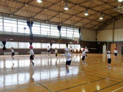 体育の授業で縄跳び練習が始まりました。前とびがじょうずにできる子どももいました。短縄チャレンジに向けて、がんばりましょう。