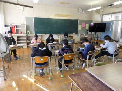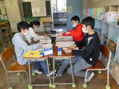 交代式の前の委員会活動では、児童会の新旧役員顔合わせを行っていました。新しい役員は、「6年生を送る会」の準備を始めました。
