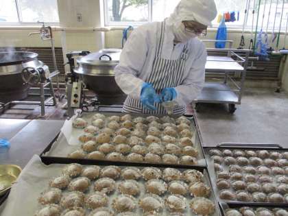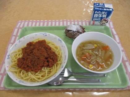今日はバレンタインデーということで、給食ではココアとチョコチップが入ったカップケーキを焼きました。