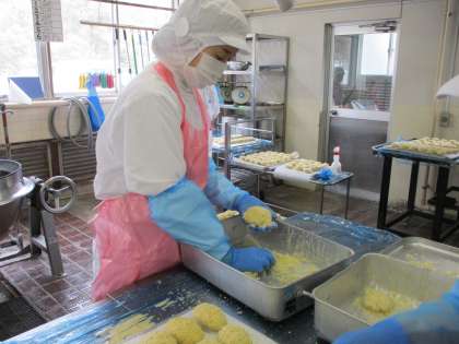 給食では、おから入りのじゃがいもコロッケを作りました。衣がサクサクで大好評でした。