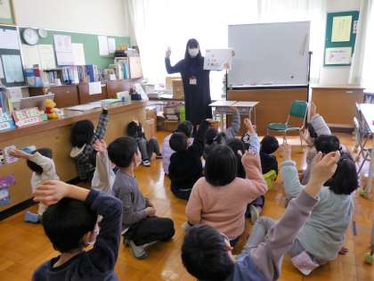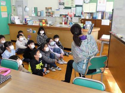 3学期の給食コラボの読み聞かせは。コロッケの話でした。おいしそうなコロッケを作っている場面では、子供たちは最大限の想像力をはたらかせて聞いていました。