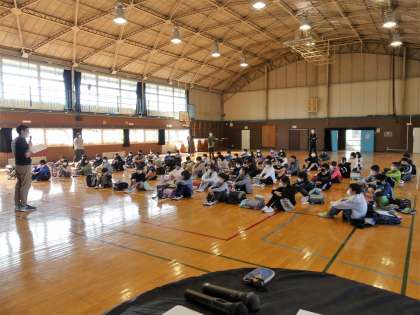 第1回目のクラブ活動は、どんなクラブに入りたいかを決める希望調査です。5年生と6年生が、前年度の活動内容と、新設希望のクラブについて、説明しました。高学年として、とても立派な発表でした。