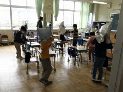 「お・・おさない か・・かけない し・・しゃべらない も・・もどらない」を守って、みんな、じょうずに避難することができました。