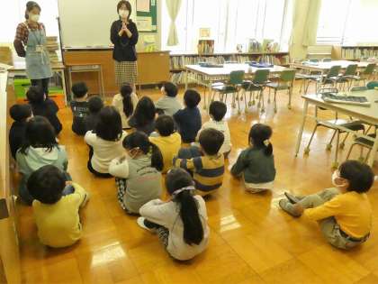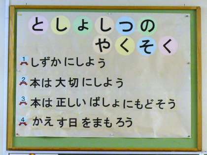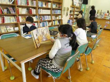 1学期最初の図書の時間です。学校司書と図書担当の先生から、図書室利用についての話がありました。約束を守って、たくさんの本と出会いましょう。